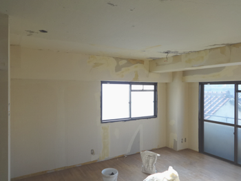 老朽化したリビングを一度修復し、新しい建材でリフォームしますので新築の部屋と同様になります。